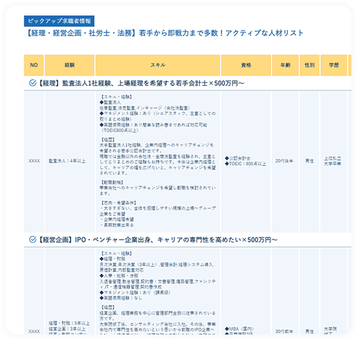 登録者データ・人材リストCANDIDATE REPORT / LIST