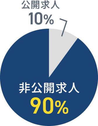 これまでにお預かりした求人数は18万件以上にのぼり、そのうち90%以上が非公開求人です。